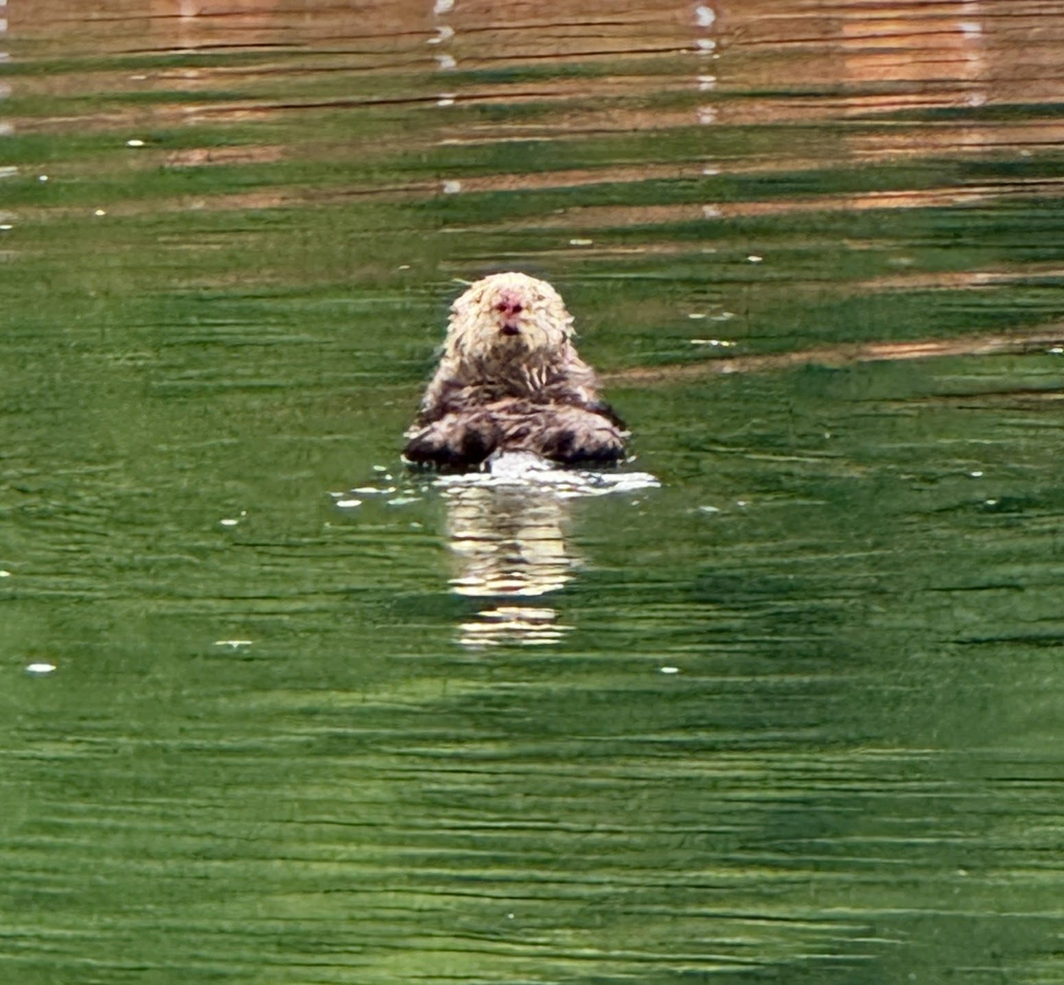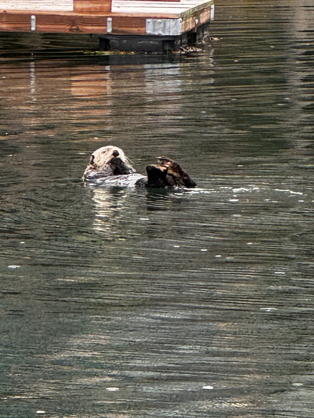 Next up – sea otters who float on their backs and entertained us for awhile with their cuteness. Did you know that they have a pouch under their armpit that they use to store a favorite rock that is used for cracking shellfish open?