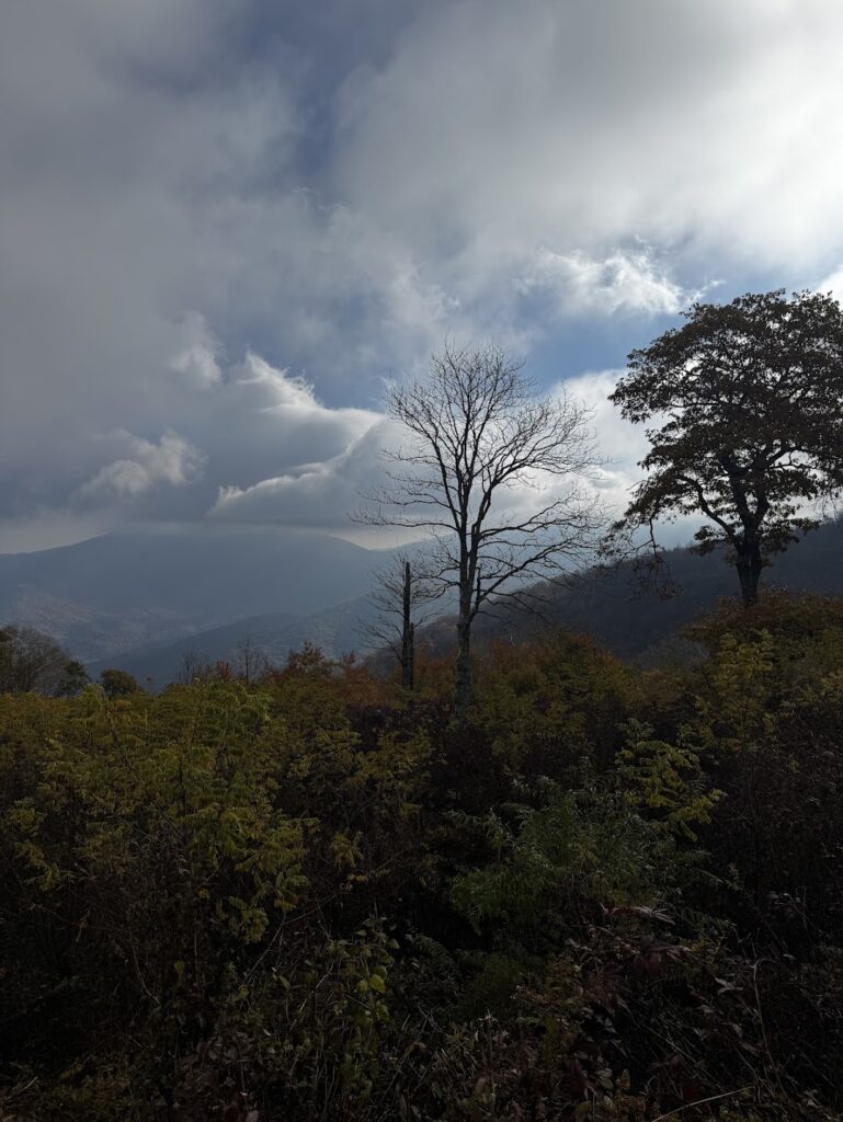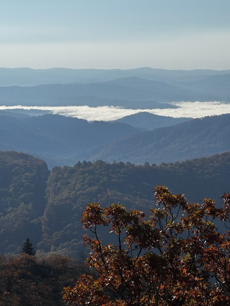 A few weeks back Chris and I took a little drive on the Blue Ridge Parkway. The mountains were showing off their fall colors and we enjoyed a drive even when the weather turned a bit cloudy and dark. It was still a great drive that ended too quickly for my liking but alas – there were. other things that called us.