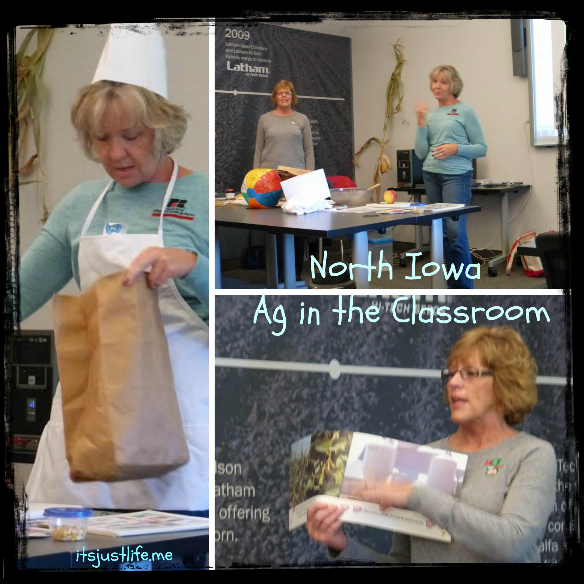 While we were at the Latham facility we were also treated to a wonderful lunch which was followed by a presentation by Brenda Adams and Linda Anderegg who are a part of the North Central Iowa Ag in the Classroom group This is a 501(c) organization that reaches 10,000+ students in grades K-6th grades a year. That is a staggering number, don’t you think? These ladies are amazing. They play games with the children and do hands on learning so that the students gain an appreciation for all things related to agriculture. Some of these children would never have any experience with agriculture if it were not for this program that is free to the schools.