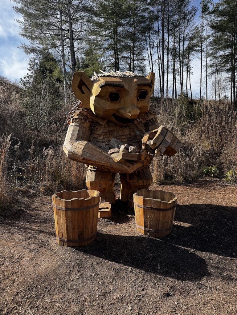 On Monday I shared a bit about the Thomas Dambo’s Trolls: A Field Study exhibition at the North Carolina Arboretum. As promised I will share the remaining trolls featured in this wonderful creative installation. I have heard from several of my readers that they have seen some of Dambo’s trolls in other areas so it is pretty neat to know that some of my readers are already familiar with the trolls.