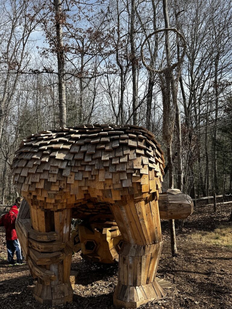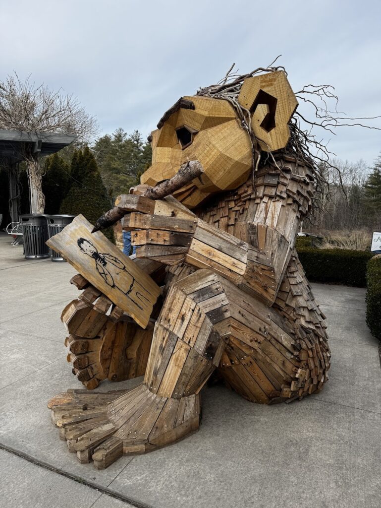 One such exhibition going on currently is the Trolls: A Field Study exhibition at the North Carolina Arboretum. Chris and I had briefly seen a few of the trolls at night when we took Micah, Wendy and Theo to experience the Winter Lights display but I knew I wanted to go back. So we did. Another great perk is the ability to get Zoom passes from The Transylvania County Library for different venues in our area. We used a few of them last year for Fama and PopPops Camp and took Theo free of charge to several great places that he loved. I was able to get a Zoom pass for The NC Arboretum and off we went on a warm and sunny January day. It was perfect.