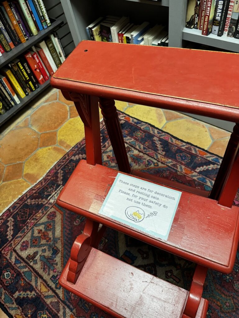 A bookstore is always a fun place to spend some time and this one was so well stocked with all kinds of great offerings. I could have spent all day there without a problem. Snuggled up on a couch with a purring cat = my perfect day.